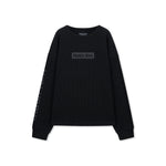 A loose-fit long-sleeve waffle T-shirt featuring logo prints placed throughout the garment and a box logo at the center chest.