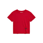 A cropped T-shirt featuring a mini logo label and ruched detailing.