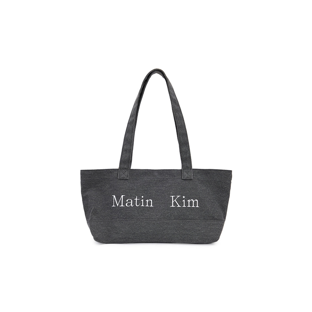 MATIN LOGO CANVAS WIDE SHOULDER BAG IN CHARCOAL