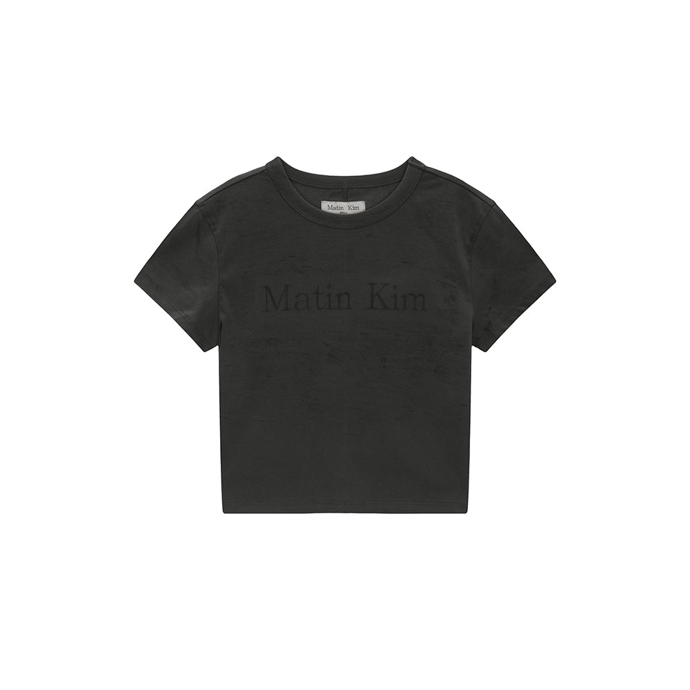 Logo crop t-shirt with painting printing using the logo stencil technique
