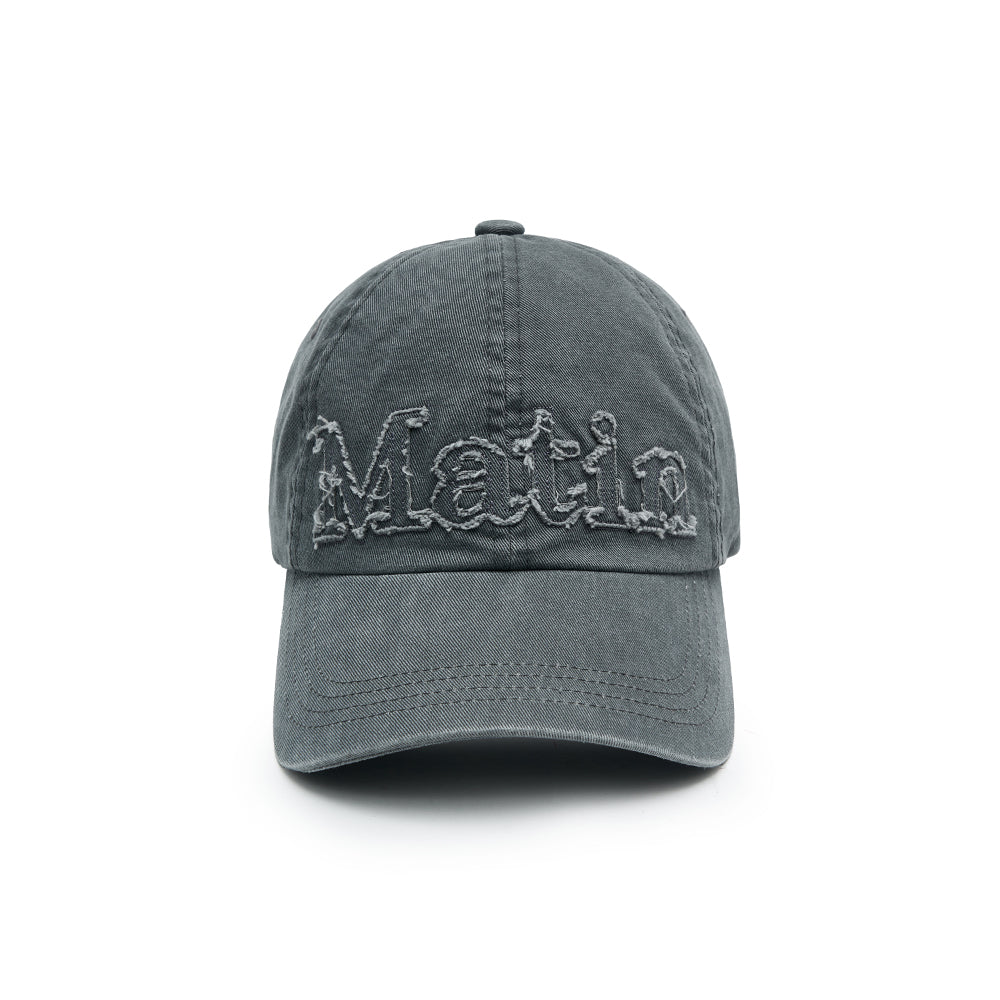 A ball cap with a rough, vintage mood, featuring a front appliqu? logo and garment washing.