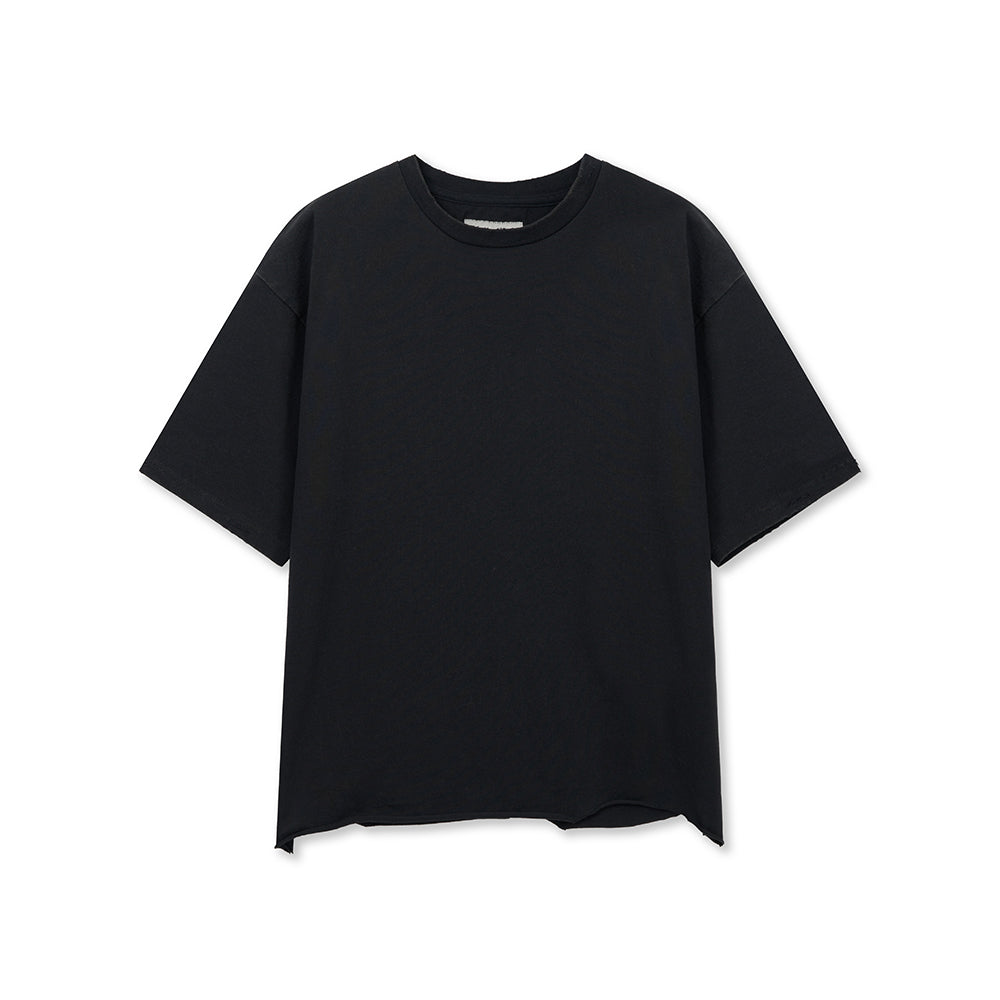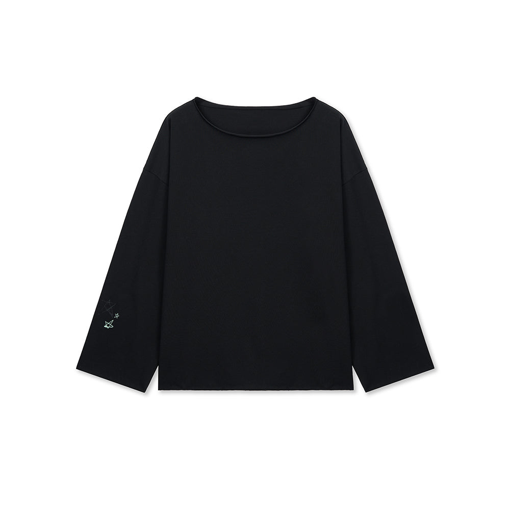 RAW HEM FINISHED BOAT NECK TOP IN BLACK