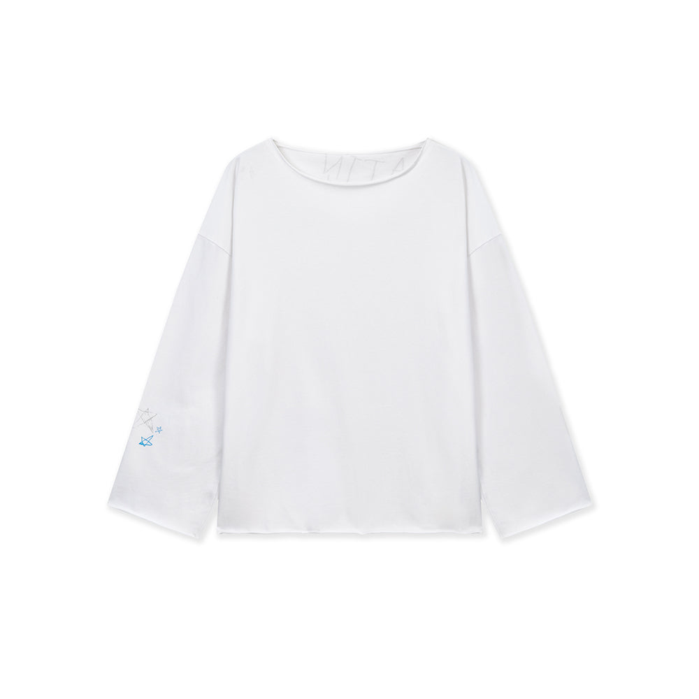 RAW HEM FINISHED BOAT NECK TOP IN WHITE