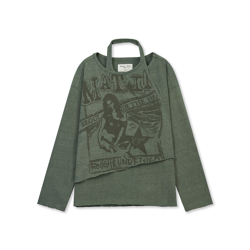 VINTAGE GRAPHIC LAYERED TOP IN KHAKI